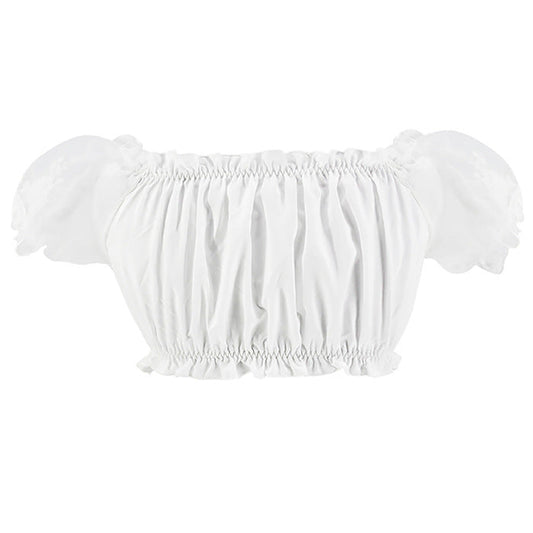 Damen Crop Top mit Puffärmeln und Spitze – Oktoberfest Elegantes Off-Shoulder Oberteil für trendbewusste Frauen